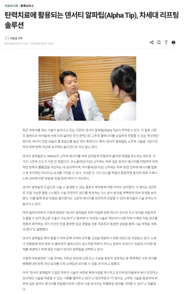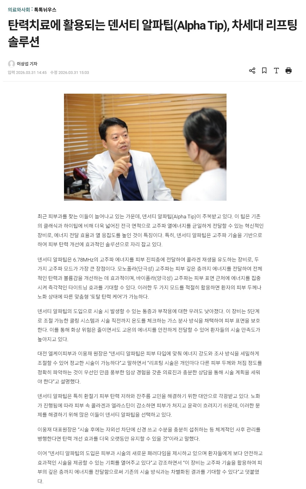 탄력치료에 활용되는 덴서티 알파팁(Alpha Tip), 차세대 리프팅 솔루션